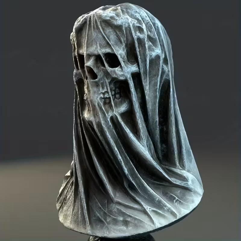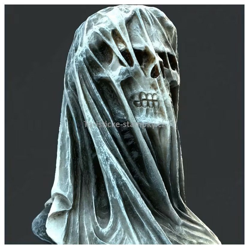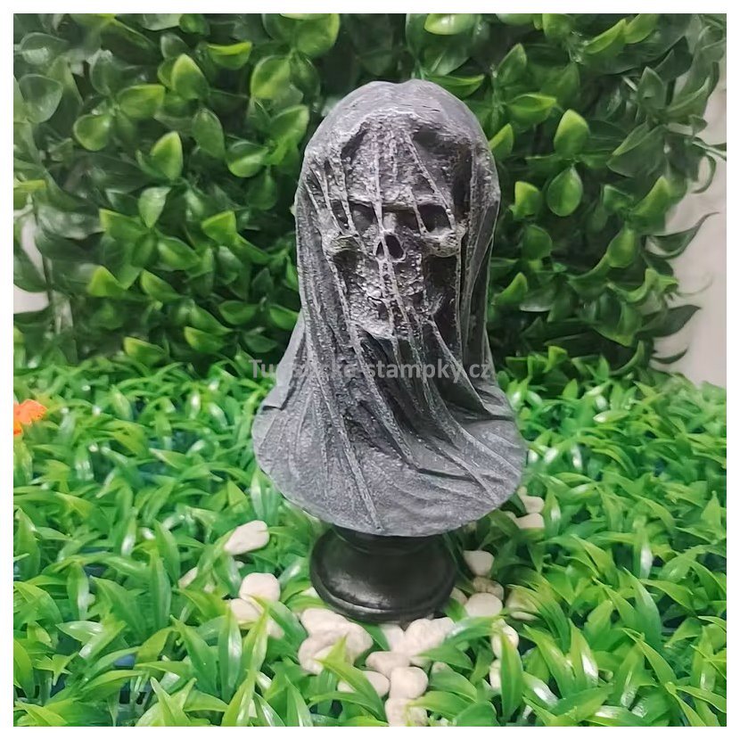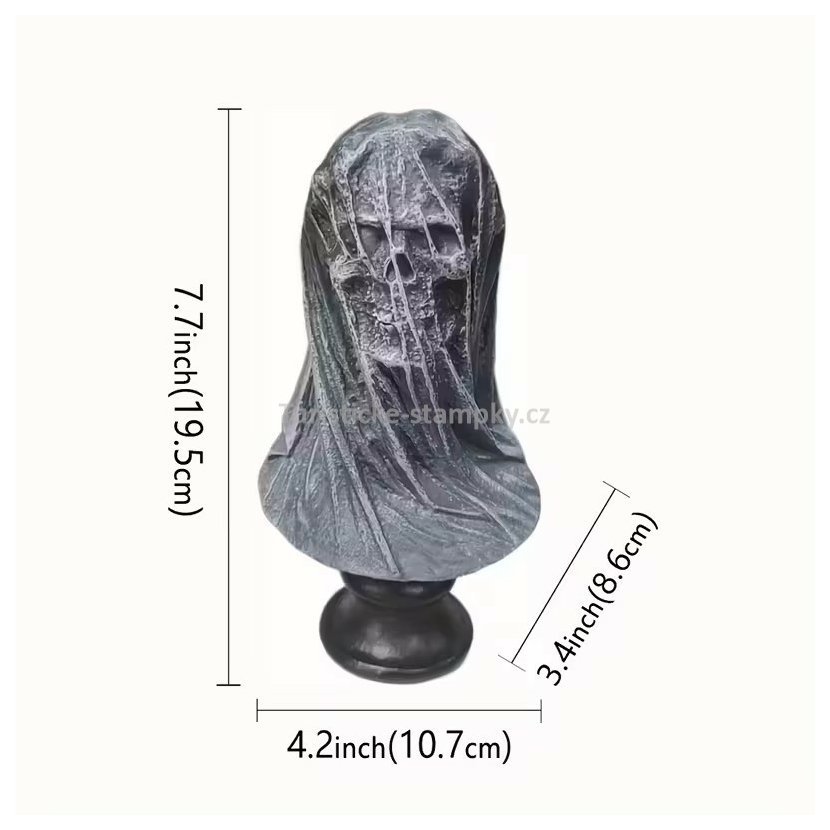 Busta lebky hlavy z pryskyřice s texturou - dekorace v barvě kamene