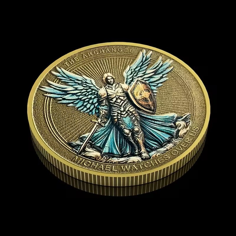 pamětní mince motivem Archanděla Michaela. Na minci je vyobrazen Archanděl Michael, jak poráží Satana v podobě draka.