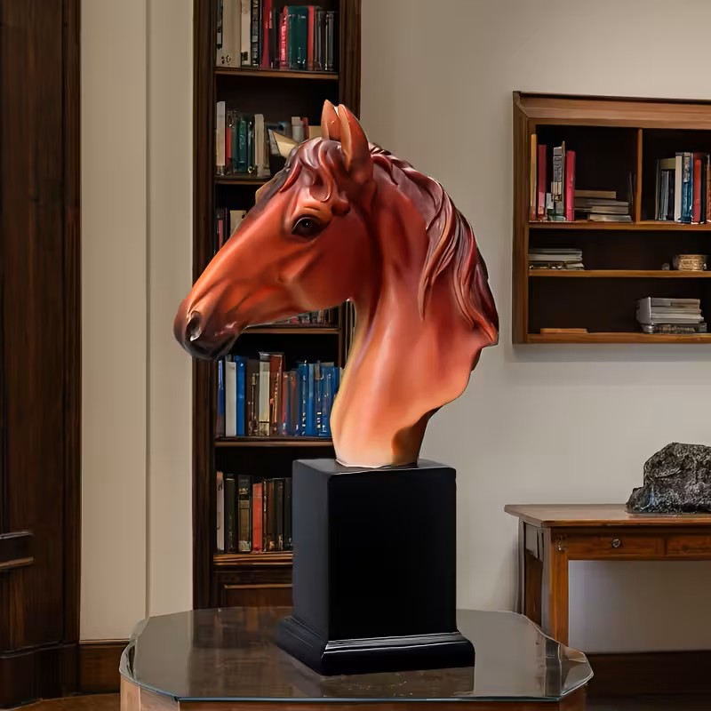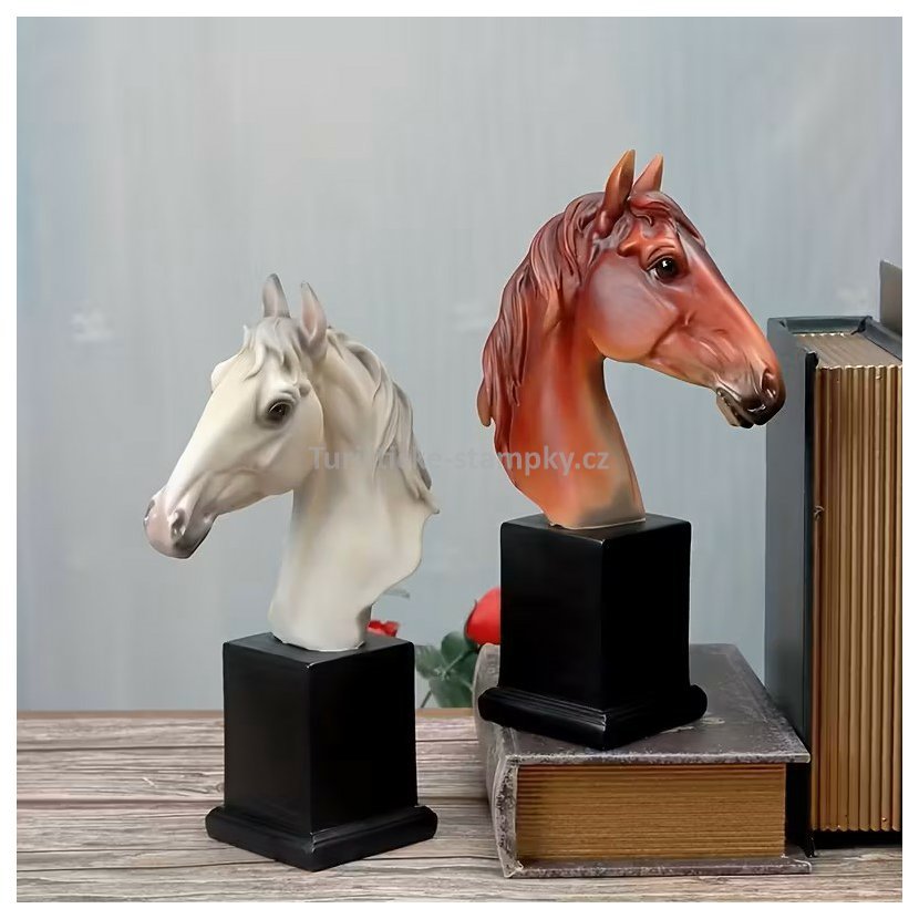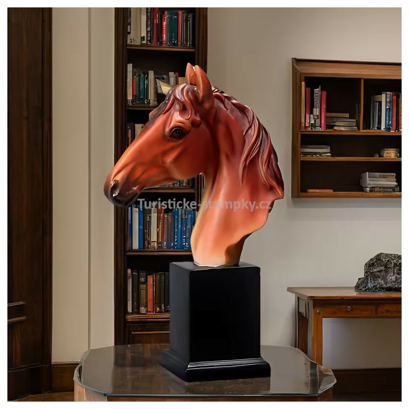 Socha koňské hlavy z pryskyřice - realistická dekorace v hnědé barvě